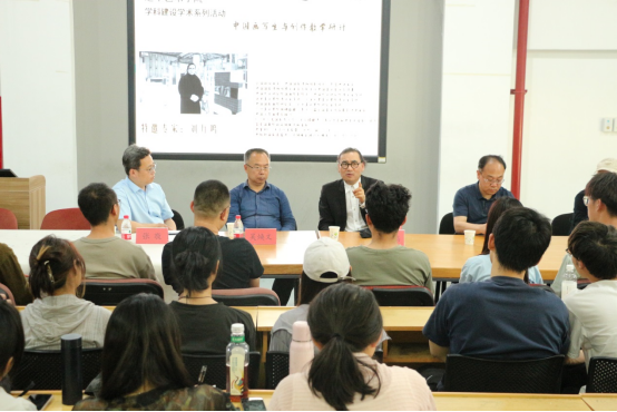 研讨会主要以中国画教学中写生与创作的关系展开交流,刘万鸣结合自身教学经验,分享了他对中国画分科教学的特征和实践方式的看法和认识,在中国画创作的话题上,重点讨论了画论对于中国创作的意义这一学术课题,并与造型学院师生就相关话题一起展开了对话和探讨。在与师生的探讨交流中,刘万鸣教授讲解了他对中国画创作的理解,并上升到画家个人境界的高度,提出了厚植文化情怀,在文化自信和自强的时代倡导下,对传统文化艺术进行守正创新,创作对自身境界有所提升的作品。座谈交流之后,刘万鸣教授进行了现场中国画教学,为我院师生示范演示了意笔花鸟画创作。