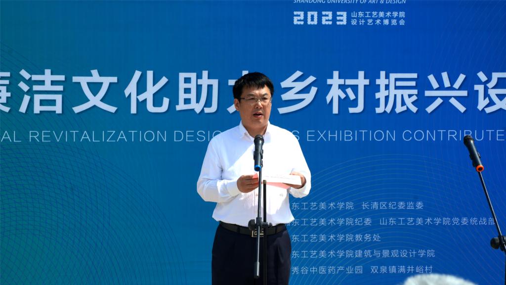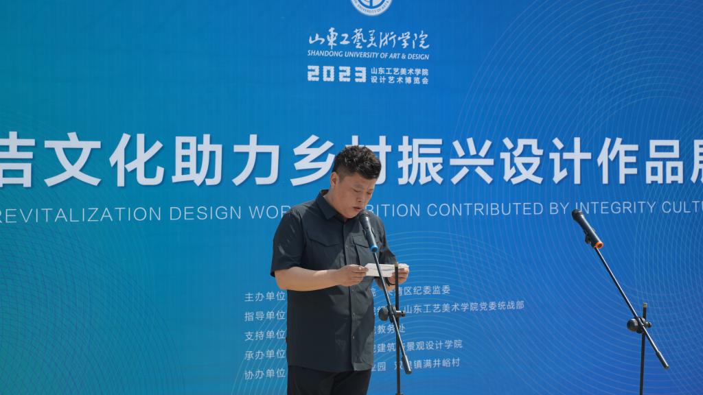 孙大刚在致辞中表示,加强新时代廉洁文化建设,是党的事业的重要保障,以廉洁文化建设助力学校服务乡村振兴,是2025新澳门免费原料大全党建引领业务工作的重要实践。建筑与景观设计学院、视觉传达设计学院多年来坚持为人民而设计的设计理念,以设计赋能乡村振兴,在教学、科研创作、社会服务等方面积极实践,本次展览集合规划、景观、园林、环境艺术等专业,协同视觉、公共艺术多专业交叉融合,同时联合党外专家学者,发挥专业优势,对设计服务乡村振兴进行了有益探索,形成了丰硕成果。此次活动是学校与驻地政府开展乡村振兴交流合作的成果展示,希望通过此次活动,激发更多的年轻朋友通过创意设计,积极参与文化赋能乡村振兴,重新激活乡村文脉,增强农村发展活力,培育乡村发展新动能,为打造乡村振兴齐鲁样板贡献智慧和力量。