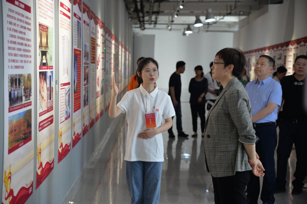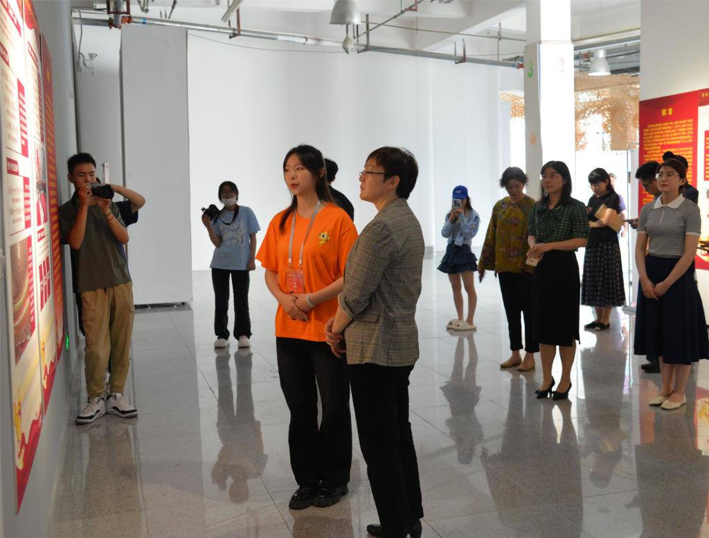 为深入开展学习贯彻习近平新时代中国特色社会主义思想主题教育,5月15日,由我校人文艺术学院党总支、教研党总支、数字艺术与传媒学院党总支联合中共核工业二二一离退休人员管理局淄博管理处总支委员会共同举办的“两弹一星”精神进校园专题图片纪念展在长清校区美术馆举行。党委书记王晓娟,党委委员、统战部长孙大刚,党委委员、宣传部部长韩文涛,党委委员、组织部长许磊到现场参观指导。
