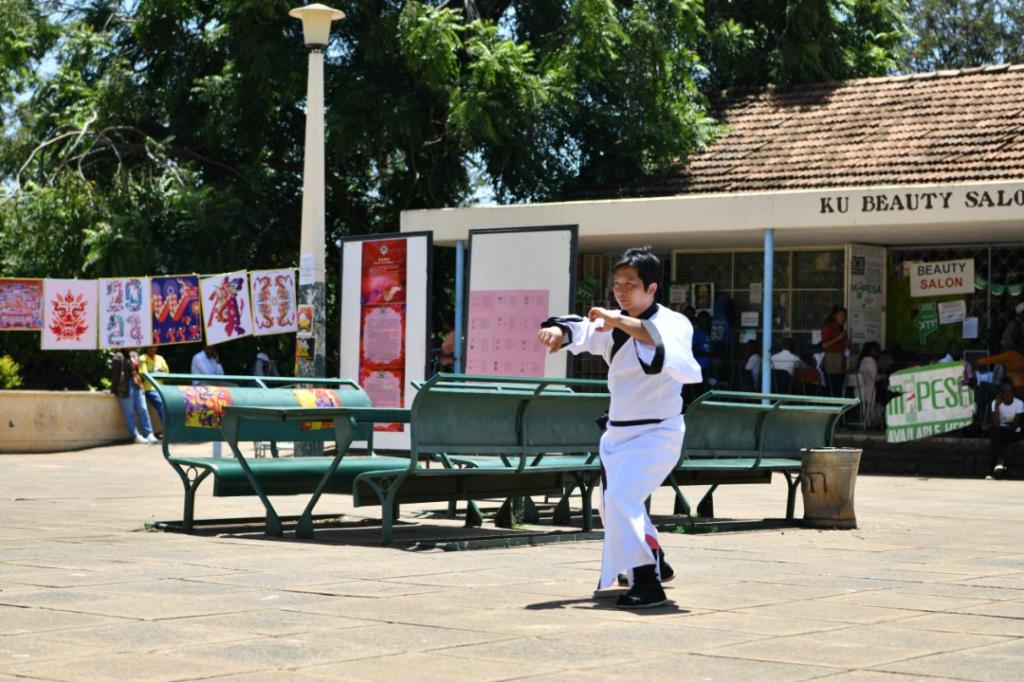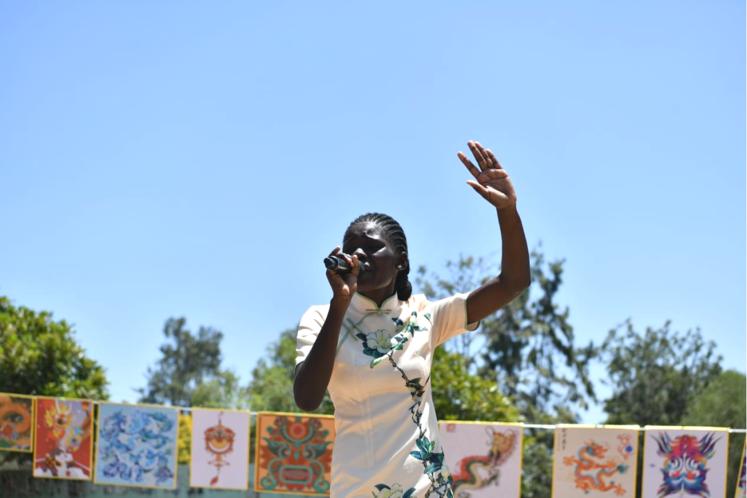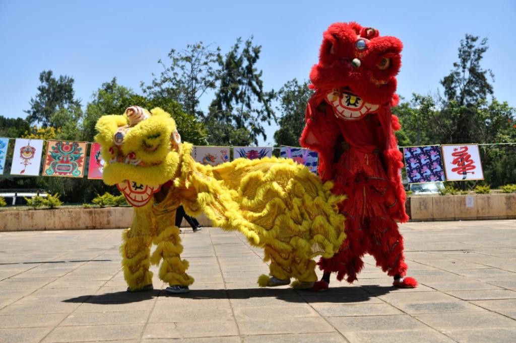 展览伊始,肯雅塔大学孔子学院学员献上了精彩的舞狮表演,为现场增添了龙年吉祥气息。孔子学院学员演唱中文歌曲《勇气》,跳起了传统舞蹈《南海姑娘》,公派教师张少凡打了一套武当八极拳.....展览开幕鼓乐齐鸣,让现场焕发出龙年新春的蓬勃生命力。