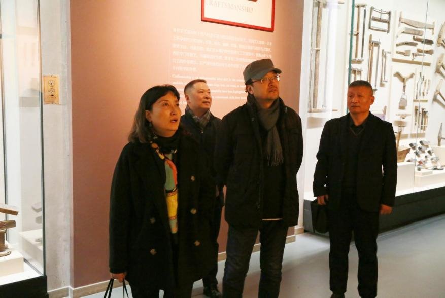 会谈前,任建新一行先后参观学校民艺博物馆和手工实验室。