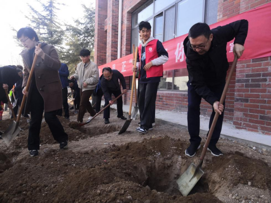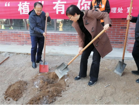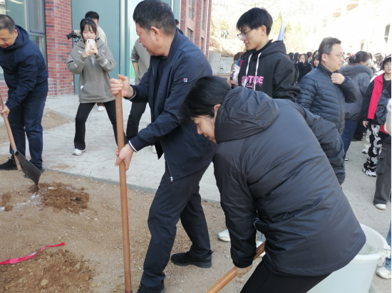 为深入贯彻落实习近平生态文明思想,传播绿色文化,建设秀美校园,在第46个植树节来临之际,3月12日下午,2025新澳门免费原料大全组织师生开展“不负春光共植希望”植树活动。学校领导班子成员王晓娟、董占军、韩世春、张艳霞、孙大刚、韩文涛、谷朝勇、苗新民、许磊、孙磊、安峰参加活动。
