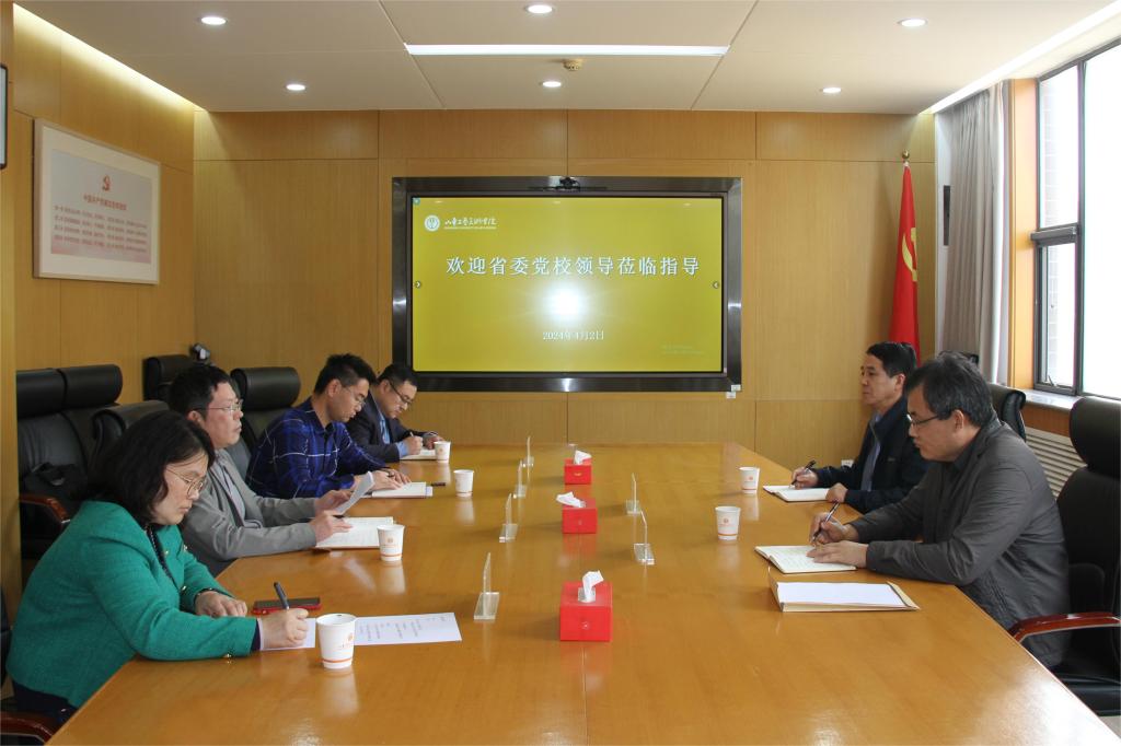 4月2日,省委党校(山东行政学院)办公室〔党校(行政学院)工作处〕一级调研员陈帆、四级调研员刘绍文一行到我校指导调研高校党校工作。学校党委委员、组织部部长、党校副校长许磊参加调研座谈。