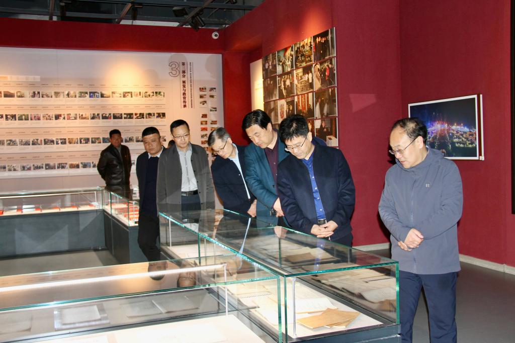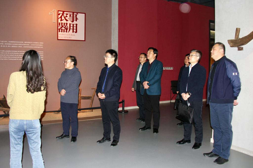 会前,学校领导陪同山东文化艺术学校领导一行参观了学校民艺博物馆。