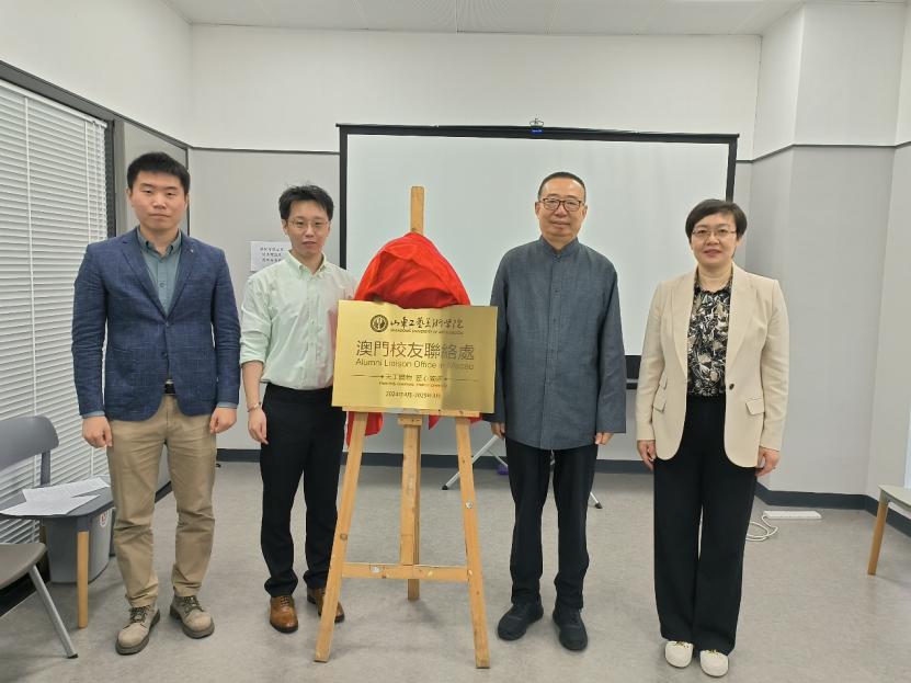 4月3日,党委书记王晓娟、名誉院长潘鲁生在澳门科技大学走访看望在澳门校友,与在澳校友座谈交流,并为我校澳门校友联络处揭牌。党委委员、统战部部长、台港澳事务办公室主任安峰主持座谈活动。
