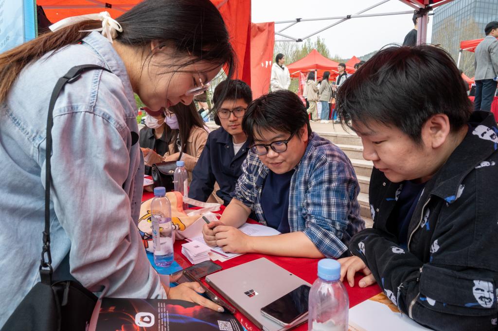 招聘现场气氛热烈,参与求职的毕业生们热情高涨,与意向单位积极对接,详细了解用人单位的人才需求和岗位需求情况。双选会现场还设置“青鸟送岗”招聘专区、大学生应征入伍咨询处、西部计划咨询处、劳动仲裁政策宣传区、医疗保障等功能区,向毕业生宣传应征入伍政策、基层服务政策和劳动仲裁政策等,为毕业生提供多层次、精准化就业指导与服务。