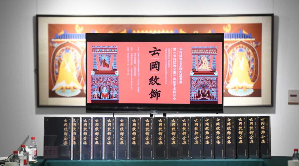 2025年5月11日,云冈纹饰艺术研究成果展在中国政协文史馆开幕,展览同期举办了《云冈纹饰全集》出版学术研讨会。云冈纹饰艺术研究成果展展出了云冈纹饰彩绘图像52幅,以及利用云冈纹饰转化的衍生文创产品。与会专家学者围绕《云冈纹饰全集》编纂编绘与出版的学术价值以及云冈纹饰艺术的文化内涵、艺术特征和文创转化展开了深入探讨。作为国家社科基金艺术学重大项目子课题成果,《云冈纹饰全集》列入“十四五”国家重点出版物出版规划,为国家出版基金资助项目,由潘鲁生主编、刘燕执行主编,青岛出版社出版发行。