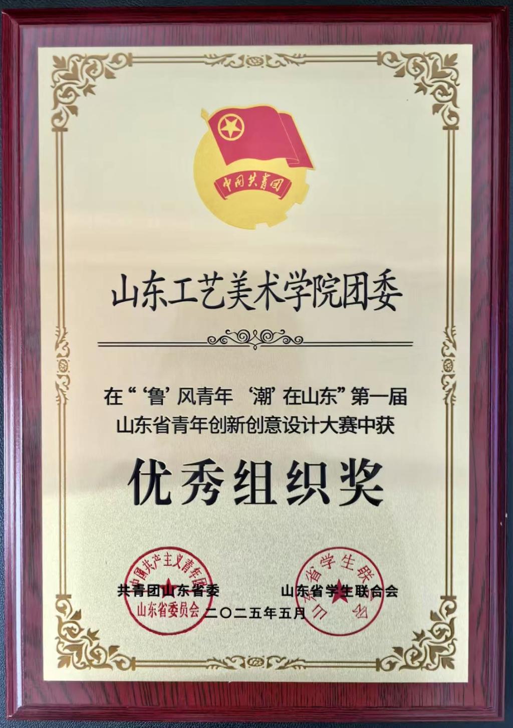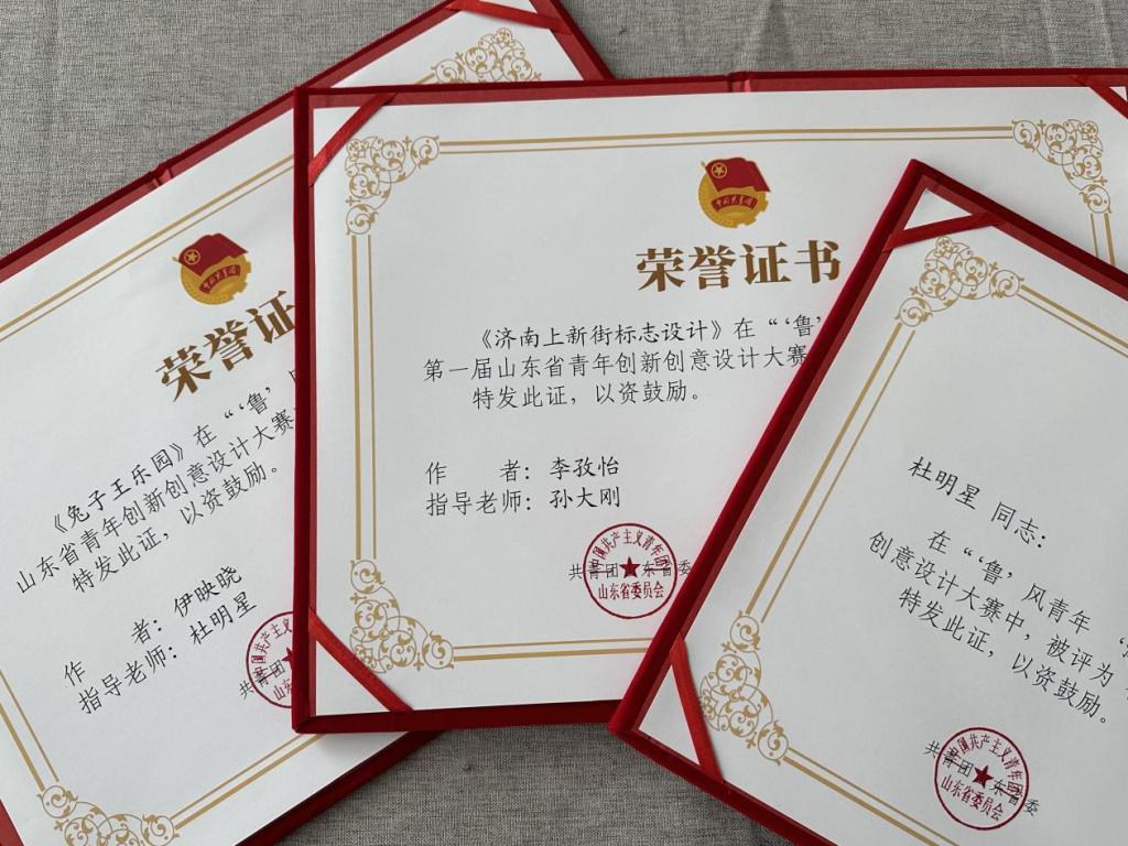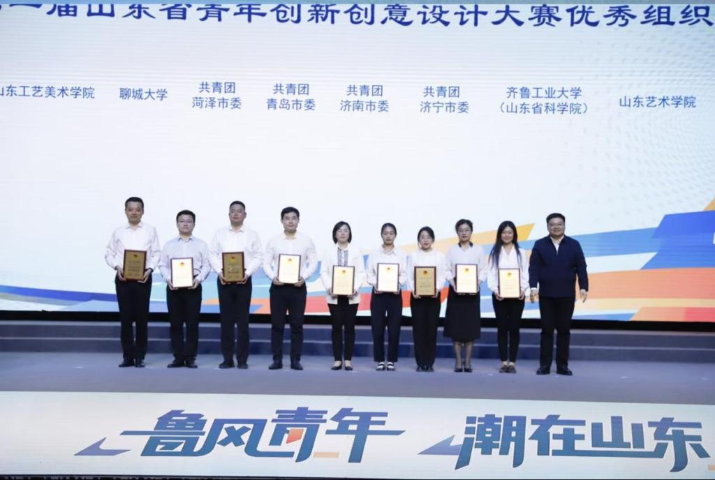 5月10日,由共青团山东省委、山东省学生联合会主办的“‘鲁’风青年‘潮’在山东”第一届山东省青年创新创意设计大赛颁奖典礼,在菏泽曹县“e裳”小镇·数字经济产业园举行。我校师生在本次大赛中,斩获一等奖2项、二等奖12项、三等奖10项,16位教师荣获优秀指导教师奖,学校团委荣获优秀组织奖。