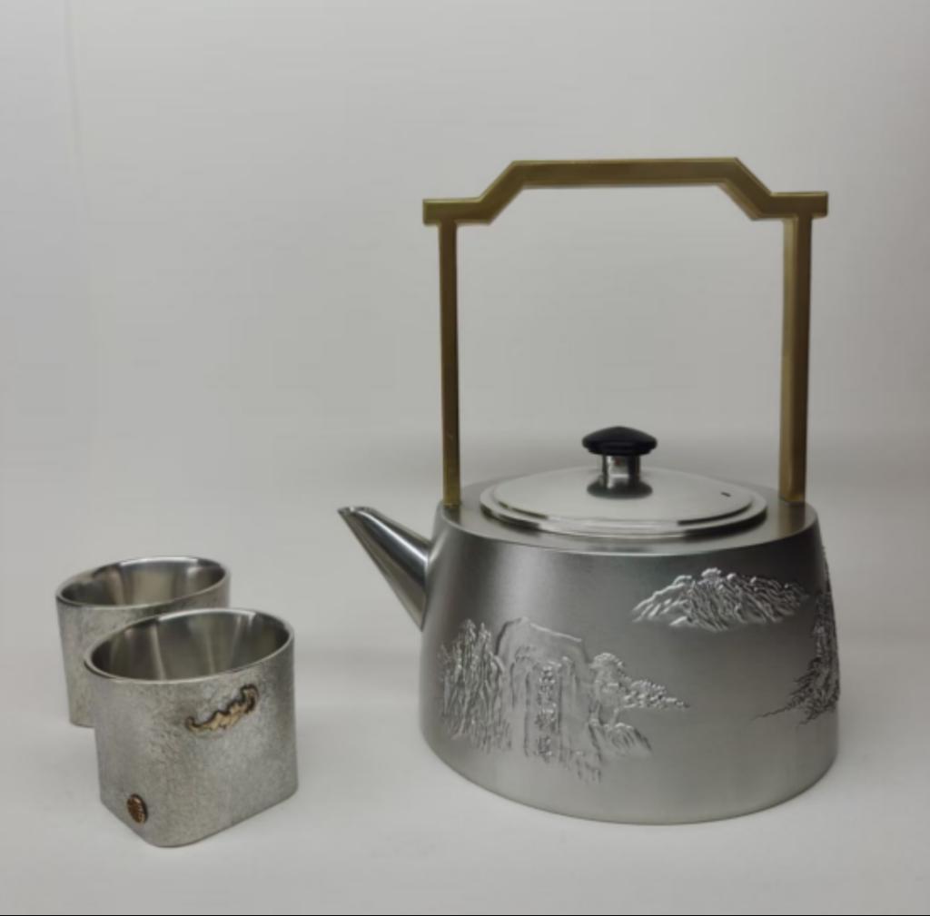 在材料与技艺的实验性探索中,同样展现出突破边界的创造力。俞杰星的《守望-舐犊之情》以陶土泥片手工成型,通过颜色釉的流动控制,将马的卧姿与山水层叠意象结合,既传递亲子温情,又以“龙马精神”暗合家国情怀;刘高品的《花器“春夏秋冬系列”》以纯银锻造錾刻四季植物,将自然意象抽象为几何纹饰,在传统花器形制中植入现代极简美学;吕纪凯的《福寿发簪》则以花丝镶嵌与点翠工艺重构“福寿”等吉祥符号,让宫廷技艺在现代首饰设计中重获文化尊严;王正伟的《塑》以传统皮囊壶造型为灵感,运用缠绳工艺与大漆材质结合,通过脱胎漆器工艺探索传统器型的当代转化,三件套器物以不同尺寸呈现,在形态与材质碰撞中诠释“塑”的空间叙事,实现功能性与艺术性的统一。