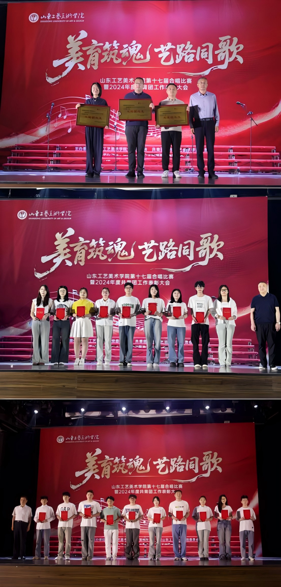 经专业评审,数字艺术与传媒学院代表队、服装学院代表队凭借精彩的演唱荣获一等奖;现代手工艺术学院代表队、应用设计学院代表队、造型艺术学院代表队荣获二等奖;人文艺术学院代表队、建筑与景观设计学院代表队、基础教学部代表队、工业设计学院代表队、视觉传达设计学院代表队荣获三等奖。