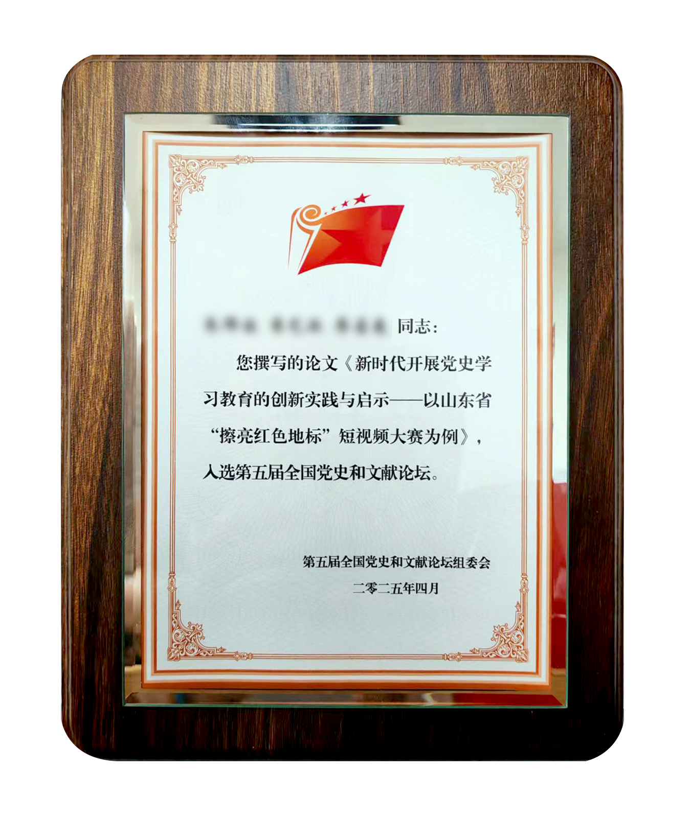 近日,中共山东省委党史研究院发来感谢信,对我校省级“双带头人”教师党支部书记“强国行”专项行动团队负责人,泰山学者艺术学团队成员、视觉传达设计学院副院长张培源及其设计团队服务“第五届全国党史和文献论坛”表示感谢。