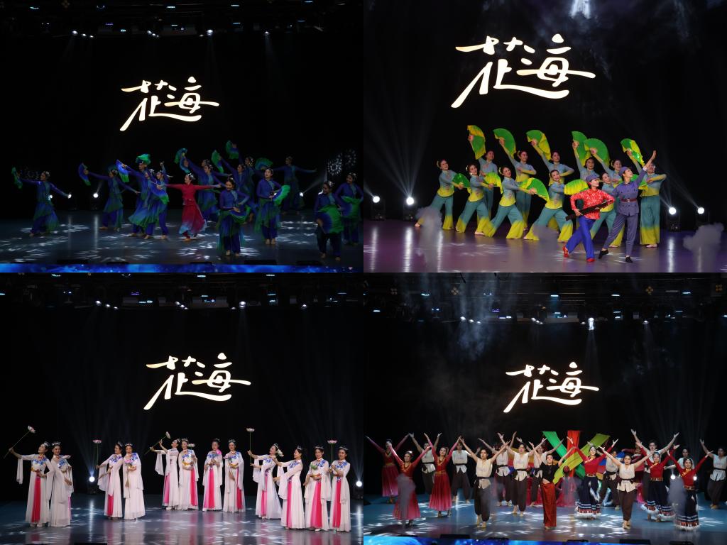 演出在服装学院舞蹈表演班带来的舞蹈《一条大河》中拉开帷幕。他们以优美舞姿,展现山工艺师生行走于青山翠谷之间,体验民族传统,传承乡土文脉,以实际行动践行“请党放心 强国有我”的铮铮誓言。由山东省老年舞协副会长、山东青年政治学院舞蹈学院的刘桂丽教授编导的《苦菜花儿开》,借助山东秧歌的表现形式,重现革命时期妇女踊跃参军的感人场景,让红色记忆在律动中焕发生机。红韵犹存,诗意又起,山东老年舞协服饰团带来的《荷塘月色》用经典优雅的音乐和妙曼轻柔的身姿步态生动演绎诗情画意,展现大自然与服饰艺术之美。数字艺术与传媒学院带来的舞蹈《共缔团结花》,以舞蹈艺术呈现中华民族多元文化魅力,将56个民族的风土人情凝练成流动画卷,彰显中华文化交融共生的团结内核。