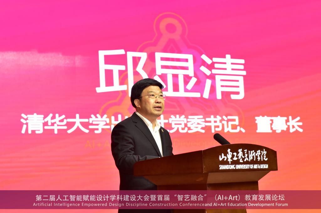 邱显清致辞。他指出,清华大学出版社坚持以服务国家教育战略为己任,持续推进“出版+教育”融合发展 ,合作出版了一系列优秀教材,探索出智能技术赋能教育内容生产的新路径,为艺术教育的数字化转型提供了宝贵经验。期望能够通过本次大会,进一步搭建产学研协同创新平台,构建深层次互惠共赢的长效机制,形成优势互补、良性互动的发展格局,共同助力人才培养、师资队伍和专业建设,推动教育从技术赋能向生态重构转型升级,共同书写智能时代教育变革的崭新篇章。