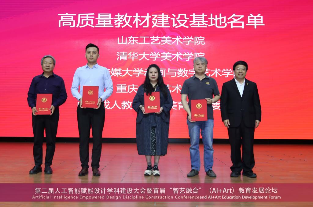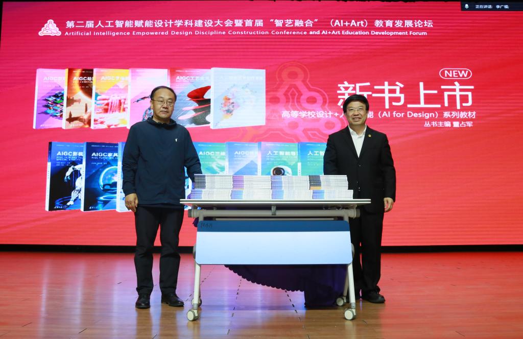 大会同步举行了《高等学校“设计+人工智能”系列教材》新书发布会;为首批“智艺融合”系列教材的牵头院校颁发了“高质量教材建设基地”荣誉证书。