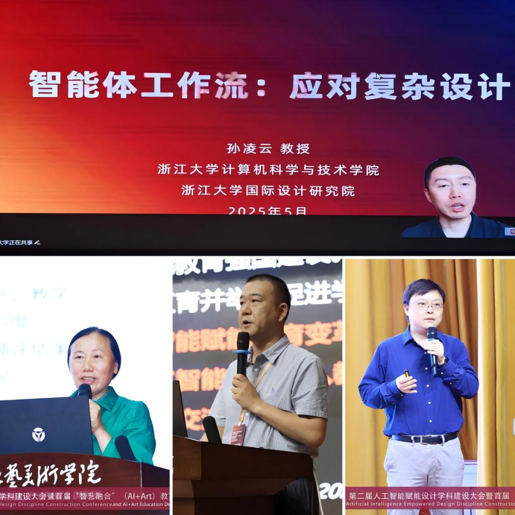 在随后进行的大会主论坛环节,董占军以《新质生产力发展的设计学科基础与实践路径》为题,黄心渊以《AIGC背景下数字媒体人才培养的思考与实践》为题,王效杰以《Al+Art高职数字创意类专业教育:观念·实践·模式》为题;徐华以《新一代人工智能产业发展趋势——从人工智能生成内容到人工智能生成服务》为题,罗仕鉴以《科技设计引领创新》为题,陈汗青以《“智艺融合”价值重塑设计学科多维发展路径探索》为题,费俊以《新媒体艺术与人工智能:创作者的边界》为题,Kostas(康思大)以《设计方法论在AI时代的发展和变化》为题,郭青春以《数字化背景下的职业院校美育建设》为题,孙凌云以《人工智能大模型带来的机遇和挑战》为题,李德杰以《“天工开物”平台的年度演进与实践》为题,高宏亮以《高校GPU算力云平台解决方案》为题,分别作大会主旨发言,共同解读最新政策趋势、分享前沿技术成果、展示行业标杆案例,为与会者呈现了一场精彩纷呈的学术盛宴。