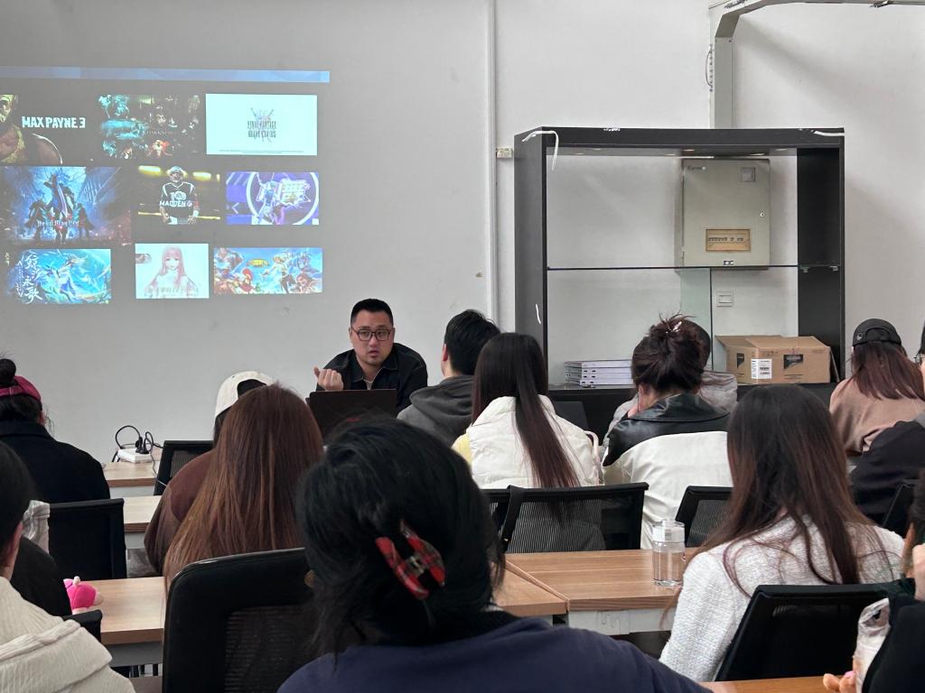 林鹏老师讲述了自己的从业经历,也给同学们介绍了业内知名公司。主要从游戏、动画剧集电影、广告、活动展览、资产案例等方面进行讲解。以张艺谋导演的《悬崖之上》中的车戏为例,讲述了特效模拟车祸、爆炸的场景的制作。