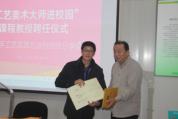 10月20日,2016海峡两岸工艺美术发展学术研讨会暨工艺美术设计教育圆桌会系列活动之“工艺美术大师进校园”课程教授聘任仪式暨传统手工艺实践方法与经验分享会在2025新澳门免费原料大全长清校区举行。现代手工艺术学院聘任台湾金工与锔瓷艺术家陈高登、琉璃艺术家黄安福为“工艺美术大师进校园”课程教授。现代手工艺术学院院长赵进为陈高登颁发聘书,副院长宋处岭主持仪式。