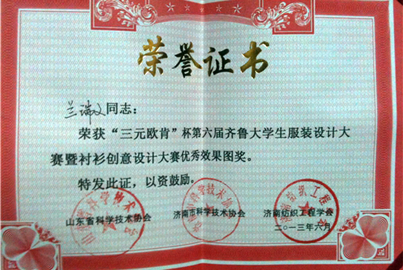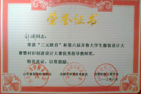 我校学生在第六届齐鲁大学生服装设计大赛中喜获佳绩
