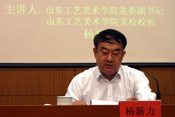 杨新力以《开启共筑“中国梦”的新征程》为题,首先从中国近现代史的发展历程介绍了中华民族伟大复兴概念的由来和中国梦的基本内容;并详细阐述了“中国梦”的本质内涵是实现国家富强、民族复兴、人民幸福、社会和谐;指出当代中国所处的发展阶段,决定了全面建成小康社会是“中国梦”的根本要求。接着,以邓小平、江泽民、胡锦涛、习近平为党的领导核心班子带领全国人民追求祖国繁荣富强的梦想之路为主线,论述了中华民族伟大复兴之梦的时代标志、历史背景和时间进程,并展望了十八大以来党领导的全国各族人民为追求民族伟大复兴之路。杨新力指出“走中国特色道路、弘扬中国精神、凝聚中国力量、坚持实干兴邦”是实现中华民族复兴之梦的必然选择。