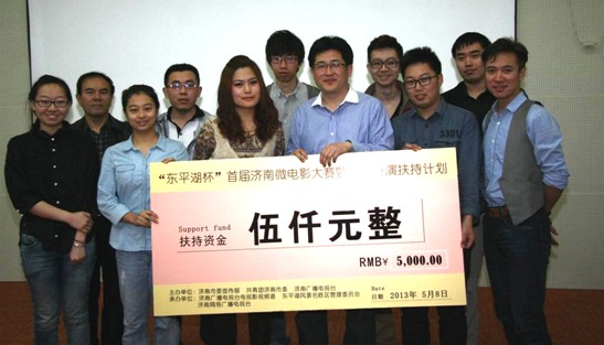 2013年5月9日上午,在济南广播电视台启动了“东平湖杯”首届济南微电影大赛暨新锐导演扶持计划。我校2009级数字艺术与传媒学院戏剧影视美术设计专业王茗同学凭借剧本《装孙》入选了“新锐导演”十强,获得5000元的扶持基金,并将剧本拍摄为以东平湖景区为场景的微电影作品。 “东平湖杯”首届济南微电影大赛暨新锐导演扶持计划,是由济南市委宣传部、济南广播电视台等联合举办,旨在激励广大影视爱好者特别是大学生微电影的创作,发现有理想、有激情、有创造力的影视制作团队和人才,为拥有电影梦想的人提供展翅飞翔的机会。 “新锐导演”十强选拔赛2013年5月5日在济南西部酒城举行,从来自全国600多份剧本中脱颖而出的30多份优秀作品的编剧、导演以及团队参加了比赛,最终角逐出最后的10名选手作为“新锐导演”的扶持对象。