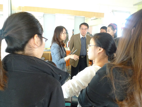 2011年10月21日(周五)上午,党委副书记杨新力来到应用设计学院听课并检查相关工作。 副书记杨新力首先听取了于伟正、郝颖老师讲授的《字体设计》专业基础课,今天是该课程的最后一次课,主要是结合设计构思、设计方法对学生作业进行点评。听完《字体设计》课后,又随机听取鲁静老师的《生活化妆造型》课程。听课结束后,又检查妆扮实训室、印刷设计研究所和家具设计研究所,对教师授课效果及实验室、研究机构所做的工作给予充分肯定。 应用设计学院任仲泉院长、扈国珍书记和教务处工作人员陪同。