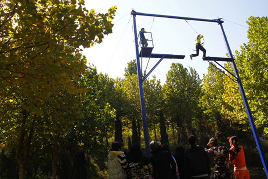 为提高研究生的综合素质,增强研究生的团队凝聚力,打破个人心理障碍、拓展思维、增强互信,10月13日,研究生处组织2014级全体硕士研究生赴山东省青年素质拓展中心开展了为期一天的素质拓展活动,研究生处副处长陈慧、辅导员王伟杰以及2014级全体研究生参加了此次活动。 活动共分三个环节进行,分别为“高空单杠”、“超音速”以及“挑战150”。首先全体成员在教练的带领下经过简单报数随机分为三队,各队都精心制定了自己的队名、队旗、口号与队歌,充分展示了本队的精神风貌和才智魄力。在第一环节“高空单杠”中,同学们需要爬上一根高约8米的圆柱,奋力向前跃出,双手抓住面前的一根单杠。这一环节中挑战大家克服恐惧心理,大部分同学都敢于直面困难、挑战自我,极少数胆怯、犹豫的同学最终也在团队成员的鼓舞下成功迈出了走向成功的那一步。第二环节“超音速”中,要求团队接力完成扑克牌从A到K依次翻开的任务,它需要的是团队成员间的协调、有效沟通以及制定最佳战略方案。经过三轮比拼,各个团队都领悟到协同配合以及充分信任队友的重要性。最后的环节是“挑战150”,在150秒内接受一系列看似难以完成的挑战,同时也提供了更大的提升空间。团队成员间积极配合、精诚合作、同甘共苦、勇敢尝试,最终完美完成了挑战。最后活动结束时,团队成员积极交流了自己的心得体会,分享着自己在活动中的收获和成长,体验着挑战成功的喜悦与自豪。 此次素质拓展活动中,我们看到的是一个蓬勃向上、勇于进取、互助友爱的研究生团队,团队成员默契配合,不断地展示自我、挑战自我和超越自我,充分发扬了团队合作精神,打破了同学们之间的隔膜,增进了了解和交流,对于增强研究生的集体荣誉感和责任感、培养研究生积极进取的精神面貌,起到了良好的推动作用。相信每一名参加培训的研究生会将此次活动中的领悟和体会,带入到今后的学习、生活以及工作中,强化个人素质,不断提升我校研究生良好的团队形象。