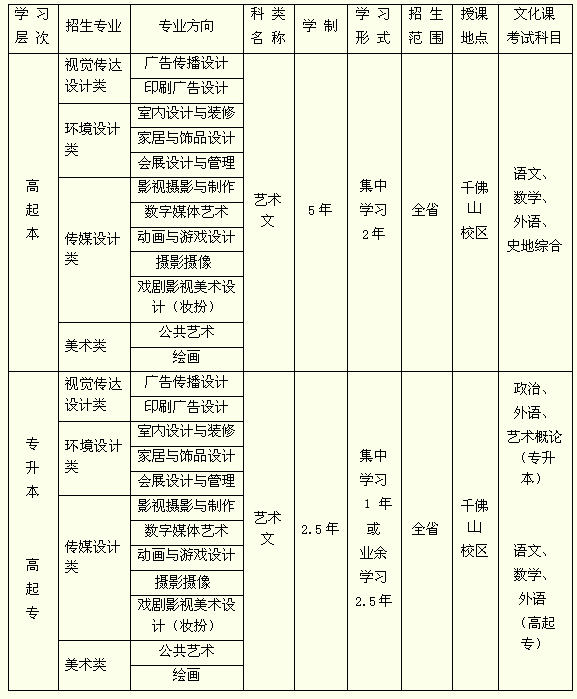绘画培养目标:本专业强调国学基础,重视文化修养,突出理论与实践、综合与专精相结合,使学生具有一定绘画、书法等艺术创作、教学、研究等方面的能力,能够胜任文化艺术、教育、研究、设计、出版、管理等领域工作的实践型文化艺术专业人才。核心课程:线描、工笔、山水创作、水墨创作、重彩创作、民间美术、写意创作、书法、油画创作、壁画创作、综合材料等。就业方向:教育部门、宣传部门、美术馆、展览馆、企事业单位等与绘画有关的工作岗位。