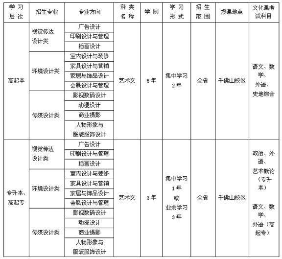 近几年,学院以多种形式拓宽办学空间,形成了本科、专科、专升本、社会培训等多层次、多形式的办学格局。学院的专业设置,充分体现学校的专业优势与社会需求,针对学生的就业方向制定培养目标,形成了涵盖设计行业的专业布局并建立了完善的教学管理体系。目前,学院在艺术设计专业框架下,开设了广告设计、插画设计、印刷设计与管理、室内设计与装修、家具设计与营销、家居与饰品设计、会展设计与管理、人物形象与服饰设计、影视数码设计、动漫设计、商业摄影等十几个本、专科专业方向。