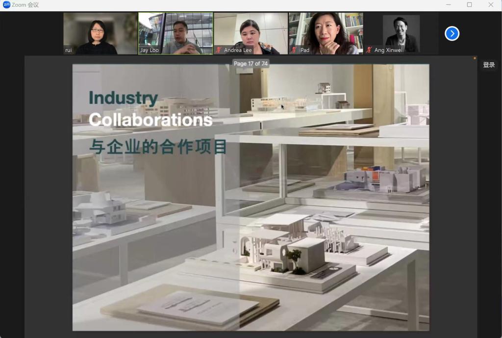 拉萨尔艺术学院国际处项目负责人Andrea Lee En Rui,空间和产品设计学院院长Ang Xin Wei,室内设计专业负责人Jay Loo,我校建筑与景观设计学院院长李文华,室内设计教研室主任梅剑平、副主任周振辉、专业教师石琳、纪薇和国际交流合作处相关人员参加了会议。