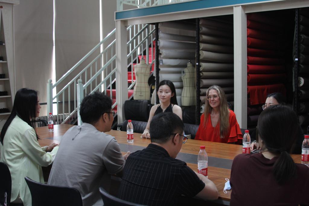 服装学院办公室主任王卫卫、教师代表骆顺华、刘庆海,国际交流合作处常胜男参加座谈。