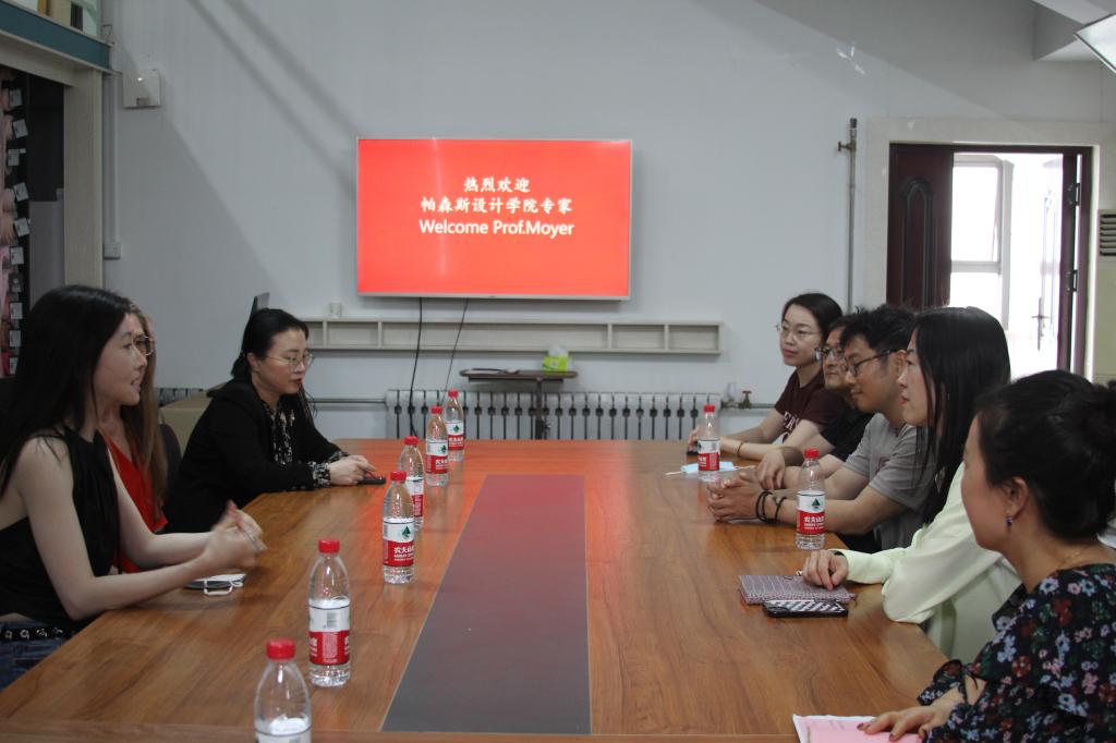 沈汀代表服装学院对苏珊娜莫伊尔一行的来访表示热烈欢迎。她简要介绍了学院的现状,并表示希望与帕森斯设计学院在课程合作、师生交流等方面展开更加深入的合作。