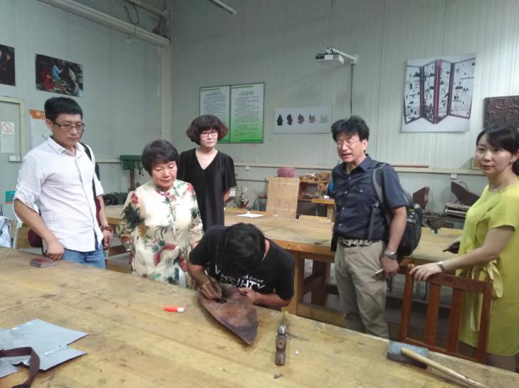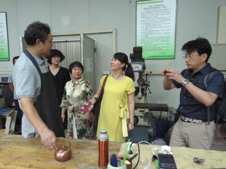 9月8日上午,视觉传达设计学院以茶话会的形式邀请工业设计学院和现代手工艺术学院的专业负责人、骨干教师一起与田中隆充教授进行了专业方面的座谈交流,就实践教学、中日设计风格的差异以及当下商品包装设计风格的发展趋势等进行了深入的讨论;并陪同田中隆充教授参观了工业设计学院部分专业实验室、多媒体实验室、3D打印实验室和现代手工艺术学院的漆艺实验室、染织艺术实验室、金工艺术实验室等。田中教授称赞了我们实验室建设的规模和井然有序的管理,并表示好的实验室的建设对于教学实践和研究具有很重要的作用,实验室管理水平的高低也决定着实践教学水平的质量。田中教授还参观了我校美术馆和博物馆。