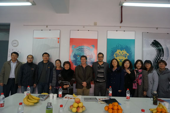 11月19日,美国拉塞尔大学(Lasell College)本科教学部院长斯蒂文 F.布鲁姆(Steven F. Bloom)教授、艺术与平面设计系主任肯奈斯•卡尔豪恩(Ken Calhoun)教授来到我院长清校区进行参观交流。视觉传达设计学院副院长侯立平教授,国际交流与合作处管维沂处长、于江龙老师,视觉传达设计学院董雪莲、张小娟、张才忠、张楠、周美丽、姜晓慧、杜明星老师以及部分学生参加了本次交流活动。 布鲁姆和卡尔豪恩教授首先来到视觉传达设计学院第六工作室进行了交流。侯立平副院长首先介绍了视觉传达设计学院的基本情况,就我院的教学情况、课程设置、国际交流情况进行了说明;斯蒂文 F.布鲁姆院长介绍了该校的教学规模、学科设置、学生作品及教师结构等情况,双方就下一步的交流合作模式进行了深入的探讨,畅谈未来的合作计划,就项目互动教学、师生互派、远程教学、展览交流等问题达成了初步合作意向,希望通过今后的交流活动进一步推动两校的专业建设和教学实践,促进中美两国文化的互动与交融。 下午,布鲁姆和卡尔豪恩教授参观了我校美术馆、孙长林艺术博物馆、中国民艺研究所,对其中的藏品赞叹不已,称赞我校拥有的深厚文化底蕴。随后,两位教授参观了特种工艺实验室,对陶瓷、金属工艺等手工艺工作室表现出了极大的兴趣,有意回到美国后进行相应的专业建设。最后,他们参观了实验中心,布鲁姆教授对我校的实验室建设与管理给予了极高的评价。 20日上午,布鲁姆和卡尔豪恩教授走访参观了我校教学单位,和教师及学生进行了热烈友好的交流,对教学环境和教师水平给予高度赞扬,对学生浓厚的学习气氛给予了充分肯定,欢迎我校师生到拉塞尔大学进行留学、访学和交流。