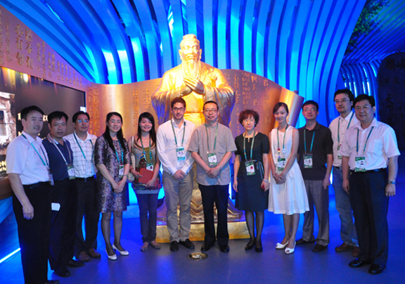 黎伟馆长在孔子像前与山东馆