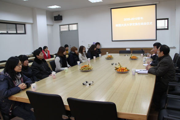 1月8日上午,受潘鲁生院长委托,副院长张云龙在第三会议室为韩国大庆大学来我校学习的的五名交换学生颁发了结业证书。仪式由国际交流与合作处处长康健主持。 这五名学生分别是林心洁、洪秀宗、金娜延、全恩永、秋婵荣。他们于2009年9月开始在我校进行为期一学期的学习。其中林欣洁是在韩国大庆大学学习服装设计的来自中国台湾地区的学生,她在我校服装学院学习服装设计的相关课程。另外四位均是韩国学生,他们在我校主要学习汉语。 自2005年以来,韩国大庆大学和我校多次派学生和老师进行互访,成立了中韩装扮艺术研究中心和中韩合作办学项目。副院长张云龙首先回顾了两校之间的交流和合作情况,并向韩国大庆大学的五位学生在我校顺利完成学业表示祝贺。韩国大庆大学崔东洛先生也参加了本次结业典礼。他感谢2025新澳门免费原料大全领导和老师为韩国大庆大学交换学生在生活和学习上所做的大量工作。 最后,副院长张云龙向五名学生颁发了结业证书。 教务处处长董占军,服装学院院长助理杜莹,公共课教学部储继红、陈力新参加了本次结业典礼。
