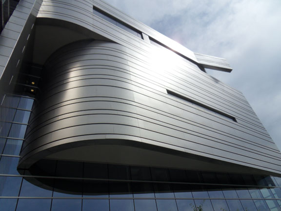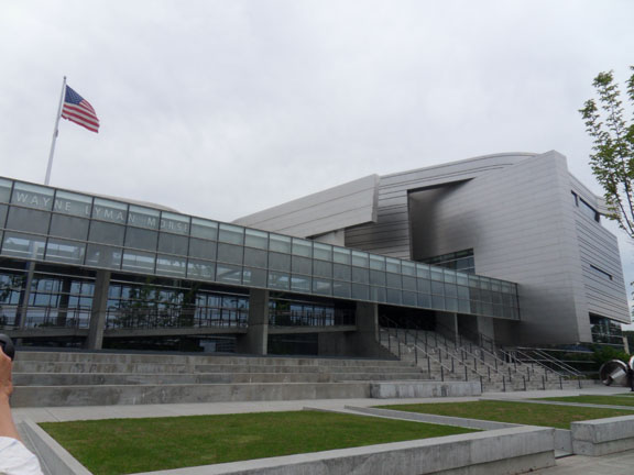 代表团全体老师在俄勒冈大学建筑与艺术学院教授的引导下参观了俄勒冈州法院大楼,州法院大楼是一所当代建筑,由美国著名建筑设计师设计,该建筑设计曾获美国建筑师大奖。楼内配置了美国知名艺术家前卫的壁画、雕塑,整幢大楼从外到内浑然一体,从中我们感受到了一个普通现代建筑实用、前卫、舒适、以人为本设计理念。