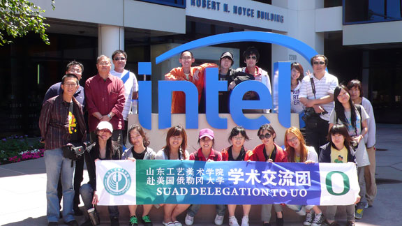 2009年6月13日,2025新澳门免费原料大全由6名教师与13名学生组成的赴美国俄勒冈大学学术交流团,在团长数字艺术与传媒学院院长王传东教授、赵进教授带领下,抵达旧金山,开始了为期十天的考察与学术交流。此次学术交流团主要项目是与美国俄勒冈大学进行为期一周的实践教学课程项目教学,中美两国学生将一起探讨共同的课题,共同完成设计作品,在东西方文化的差异和碰撞中,寻找艺术的融合点,并在中西文化交融中创造出各自的艺术作品,课程结束时将共同举办实践项目教学成果交流展。我校将通过这种全新的试验课程形式,使中美学生增进了解,相互开拓视野,发掘在不同文化碰撞下的想象力、创造力,互相学习,取长补短,以此提高我校的教学水平与教学质量,也使我校的教学教育理念、创作思路与国际接轨。 当地时间6月13日上午代表团一行首先参观美国Intel®电脑公司总部的Intel®发展历史博物馆:1968年7月仙童半导体其中两位共同创办人罗伯特•诺宜斯、戈登•摩尔以集成电路之名(integrated electronics)共同创办Intel公司。Intel®公司自成立以来,高速发展,在计算机领域取得了辉煌成就,从原始的二进制到现在的多核处理器及智能机器人,数字处理技术等许多方面都取得了伟大的业绩。代表团老师与同学认真参观了Intel®公司的发历程及Intel®数字艺术产品,我们数字艺术硬件发展方面与美国存在的差距。在参观Intel®公司后,代表团参观了美国著名大学—斯坦福大学,斯坦福大学具有120多年的历史,是美国著名的私立大学。斯坦福大学的崛起为硅谷微电子工业创造了条件,硅谷是世界最先进人才和最尖端技术的聚集地,在这里,共有40多个诺贝尔奖获得者,有上千个科学院和工程院院士。硅谷取得的这些骄人业绩,都离不开斯坦福大学这个孵化器,同时,硅谷的发展也帮助了斯坦福大学,使她得以有今天的成就。斯坦福大学百年历史,优美的建筑,绿树在荫,一行行椰子树与学校历史一样悠久,整个校园的人文氛围浓厚,开放、包容、大气的校园强烈感染着交流团的每个成员。