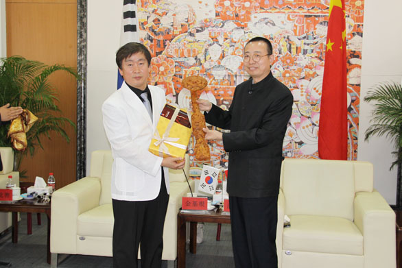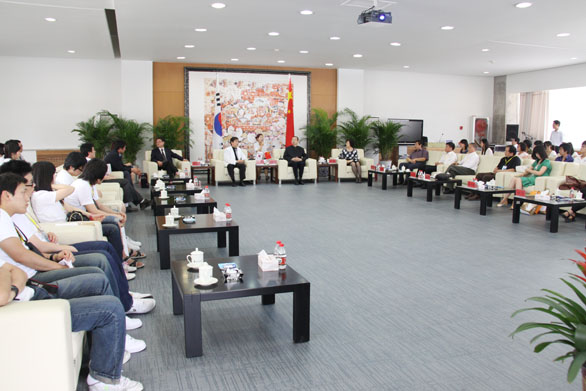 5月27日下午,院长潘鲁生,副院长李新,院长助理、办公室主任王立果在我校长清校区贵宾接待室会见了来访的韩国庆云大学师生访问团,并进行了座谈。韩国庆云大学访问团团长金基根,学部长池龙善,指导教授河钟旭、金炳澈、白正炫,教授金水日及我校部分师生代表参加了座谈,座谈会由副院长李新主持。 潘鲁生院长指出,文化需要交流,艺术更需要交流,中韩两国文化背景、文化传承相一致,促进了两国及两校的感情,通过参观我校正在举行的毕业生作品展,发现两国的学生进步很大,每件作品都能体现本民族的状态,反映各自的文化背景,诠释各自的文化特征,尤其是韩国学生作品,以“面具”为主题的招贴,非常有内涵,充满了民族特色;我校视觉传达设计学院学生作品也蕴含了浓郁的中国风,体现了社会实用性。潘鲁生院长表示,期待每一位中韩学生,每一位未来的设计师为两国、两校友谊做出贡献。 韩国庆云大学访问团团长金基根对我校的热情招待表示感谢,对我校今天主办的毕业生作品展给予高度评价,并感谢潘鲁生院长亲自讲解、演示部分作品,使韩国师生收获很大。金基根表示,希望两校在艺术设计领域中有更好的合作,希望两校的交流越来越多,并祝愿我校获得更加快速的发展。 两校教师代表互换教授纪念牌,两校学生代表互换学生纪念牌,双方互赠礼物。最后,与会人员合影留念。 我校国际交流与合作处处长康健,视觉传达设计学院院长石增泉,数字艺术与传媒学院院长王传东及有关工作人员参加座谈。 昨天下午,韩国庆云大学访问团参观了我校美术馆、博物馆、数字艺术与传媒实验中心、特种工艺实验中心和综合实验中心。