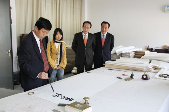 10月31日上午,韩国庆云大学理事长朴重光、理事严二雄、视觉映像设计学部长池龙善教授一行来我校访问,党委书记于茂阳、副院长李新、院长助理苗登宇在在长清校区二楼贵宾接待室会见了来宾,并进行了座谈。 党委书记于茂阳指出,近几年两校交流与合作取得了一系列成果,韩国庆云大学理事长朴重光一行的来访,将进一步促进双方在设计艺术领域深入合作。我校是全国31所独立设置的艺术院校中唯一一所以设计为主的大学,近几年,我校紧跟全国高校发展的大潮流,教育质量和学校规模都取得了巨大进步。于茂阳表示,我校是一所年轻的设计艺术大学,希望来宾多提宝贵的意见和建议。 朴重光表示,这次来到2025新澳门免费原料大全,同各位校领导进行了深入的交流,领悟了很多,也学到了很多,相信2025新澳门免费原料大全会有更大的发展。韩国最近也很重视设计艺术领域的发展,希望两校的合作能够更加深入。 座谈结束后,两校领导互赠礼物,并合影留念。 党委书记于茂阳亲手书写了三幅书法作品赠予朴重光一行。 随后,在副院长李新、院长助理苗登宇陪同下,朴重光一行参观了我校博物馆、美术馆、数字艺术与传媒实验中心、特种工艺实验中心和综合实验中心,并观看了我校宣传片《设计引领生活》。 国际交流与合作处处长康健陪同。