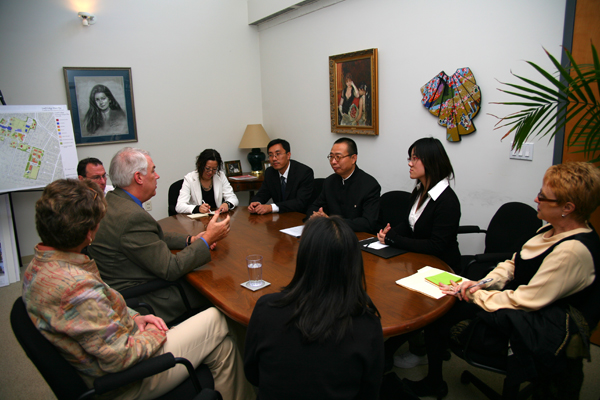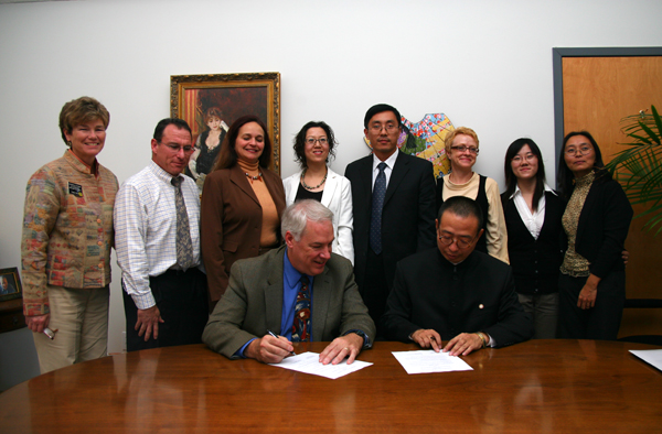 、人事处处长韩世春、中国民艺研究所副所长赵屹等。经过商讨,双方达成一致意见:双方愿意促进两校在教学、科研方面的交流与合作;双方将积极寻求合作开展科研项目、研讨会,以及教师与学生交流互访、课程教学和相关合作出版等。同时决定两校可以首先选择服装设计及服装管理专业展开合作,以探索并具体实施框架协议。在具体操作上,双方可确定共同的教学项目,互派师生开展10天左右的短期访学,在项目运作成熟的基础上,再继续扩展与深化其他领域的合作与交流,如派出留学生或开展教师进修等项目。