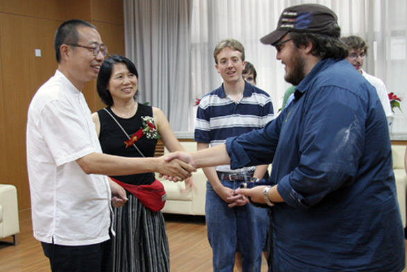 院长、副院长李新在长清校区二楼贵宾接待室会见前来我校合作交流的美国俄勒冈大学学生访问团。此次俄勒冈大学学生访问团14名成员在该校谭莹教授的带领下,于9月7日至16日在我校进行了为期10天的试验性课程合作交流活动。