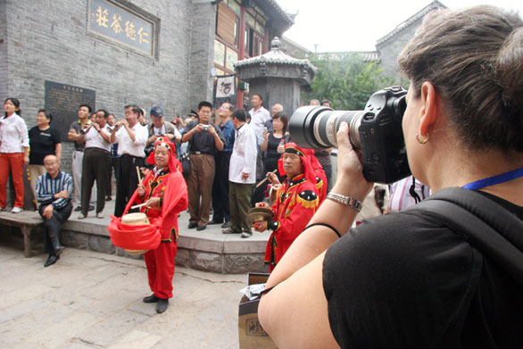 在周村,这些来自世界各地的摄影家们还看到了富有中国情趣的“抛绣球”表演和在茅草房中的皮影戏,感受到了山东淳朴而不失热闹的民俗风情。
