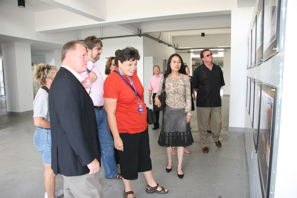 9月22日上午,首届“齐鲁国际摄影周”和“世界摄影家聚焦齐鲁大地国际摄影大赛”开幕前日,国际最具影响力的摄影组织之一美国职业摄影家协会主席杰克·瑞兹尼克、首席执行官戴维·特拉斯特、副主席罗纳德·尼克斯、财政总监斯考德·克卡尔一行9人走进“齐鲁国际摄影周”分展区——我校长清校区。院长
