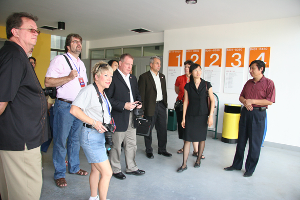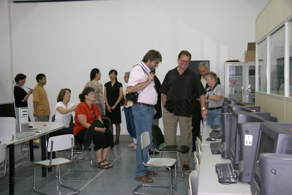 上午10时,美国职业摄影家协会主席杰克·瑞兹尼克、首席执行官戴维·特拉斯特、副主席罗纳德·尼克斯、财政总监斯考德·克卡尔一行9人抵达我校,在院长助理、办公室主任王立果,数字艺术与传媒学院院长王传东的陪同下参观了即将在我校展出的摄影作品及我校实验室,重点参观了我校数字艺术与传媒实验中心。参观过程中,外宾对我校实验室的设置与格局表示赞赏,对学生设计作品表现出了浓厚的兴趣。