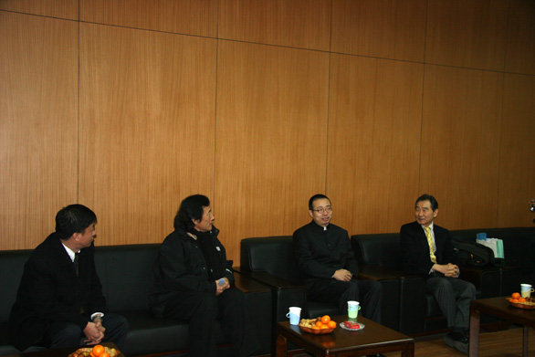 、造型艺术学院院长陈飞林、国际交流与合作处处长康健在长清校区二楼贵宾室接待了来宾。