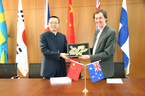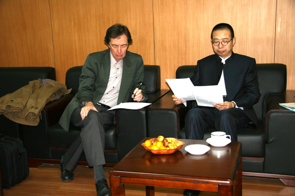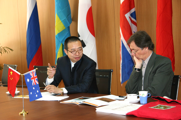 与澳大利亚新南威尔士大学美术学院院长依恩•霍华德就双方合作问题进行座谈,院长助理、办公室主任王立果,教务处处长