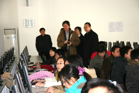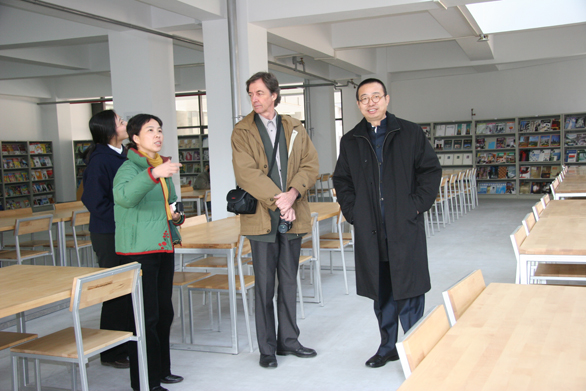院长向依恩•霍华德院长赠送了礼品和画集,并陪同依恩•霍华德参观了图书馆、多功能厅、电脑室等。