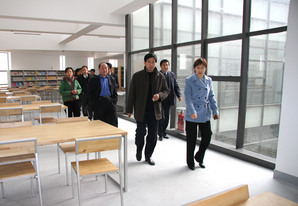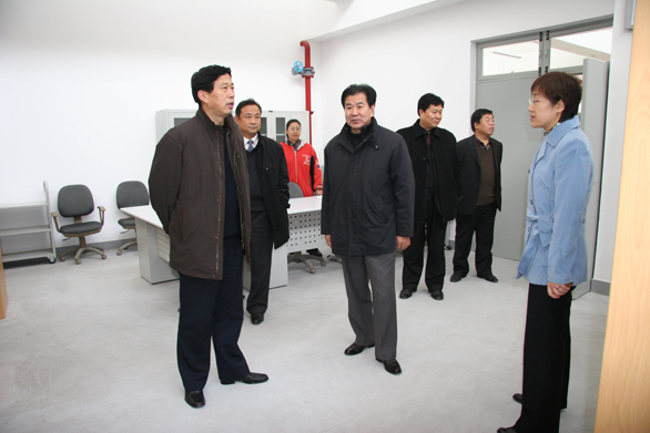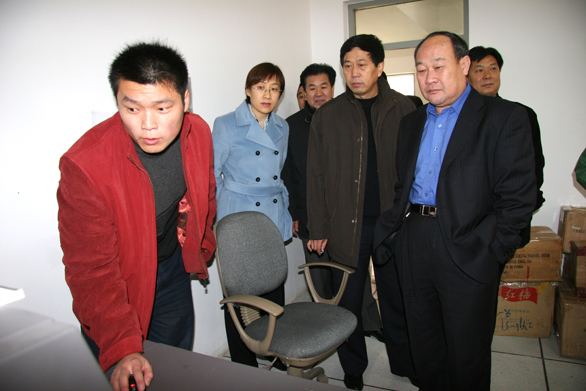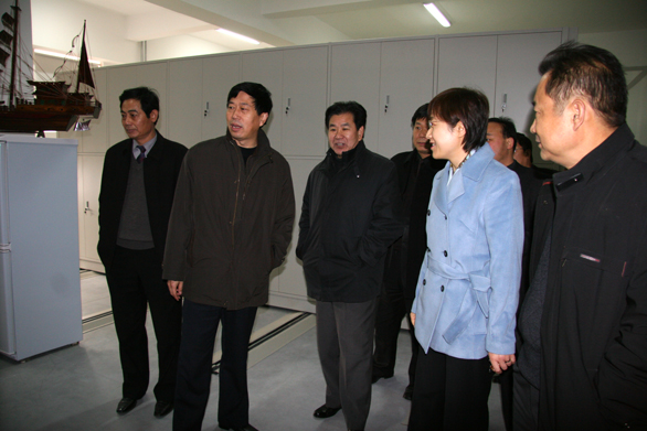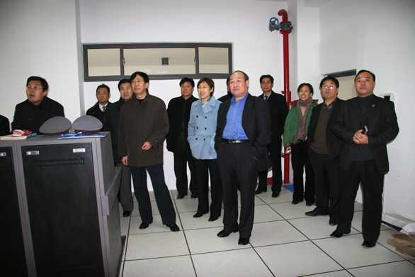 于茂阳等陪同来宾参观了图书馆、档案室、广电中心、监控中心、多功能厅。