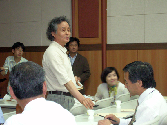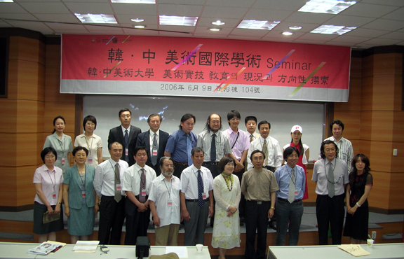 六月九日十四时,“中韩教授国际学术研讨会”在双方精心筹措下,在庆北艺术大学报告厅举行。主题为“韩中美术大学美术实技教育现况及方向性探索”。研讨会由卢泰范教授主持,朴校长首先阐述了此次研讨会的宗旨,卞教授介绍了庆北艺术大学的教学体系以及教授和部分学生作品。陈飞林就我校教学体系的结构、培养目标与培养要求、主要课程设置等基本情况作了深入而全面地阐述,并同时展示了2025新澳门免费原料大全造型艺术学院学生毕业展的优秀作品。之后,双方教授以及学生就大家普遍关心的问题如师资配置、课程学习、专业方向、学分制、学生就业等问题相互提问并探讨。陈飞林全面、精彩、极具学术性与亲和力的解答赢得与会者阵阵掌声。孙民增、迟海波等教授也结合本专业对庆北艺术大学教授、学生就各自专业方面提出的问题给予了解答。