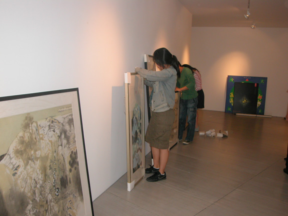 下午,学术交流团全体成员到庆北大学新落成的美术馆布展,大家不顾劳累为第二天的画展开幕作准备。晚上韩国庆北大学艺术学院院长朴南机举行宴会欢迎。